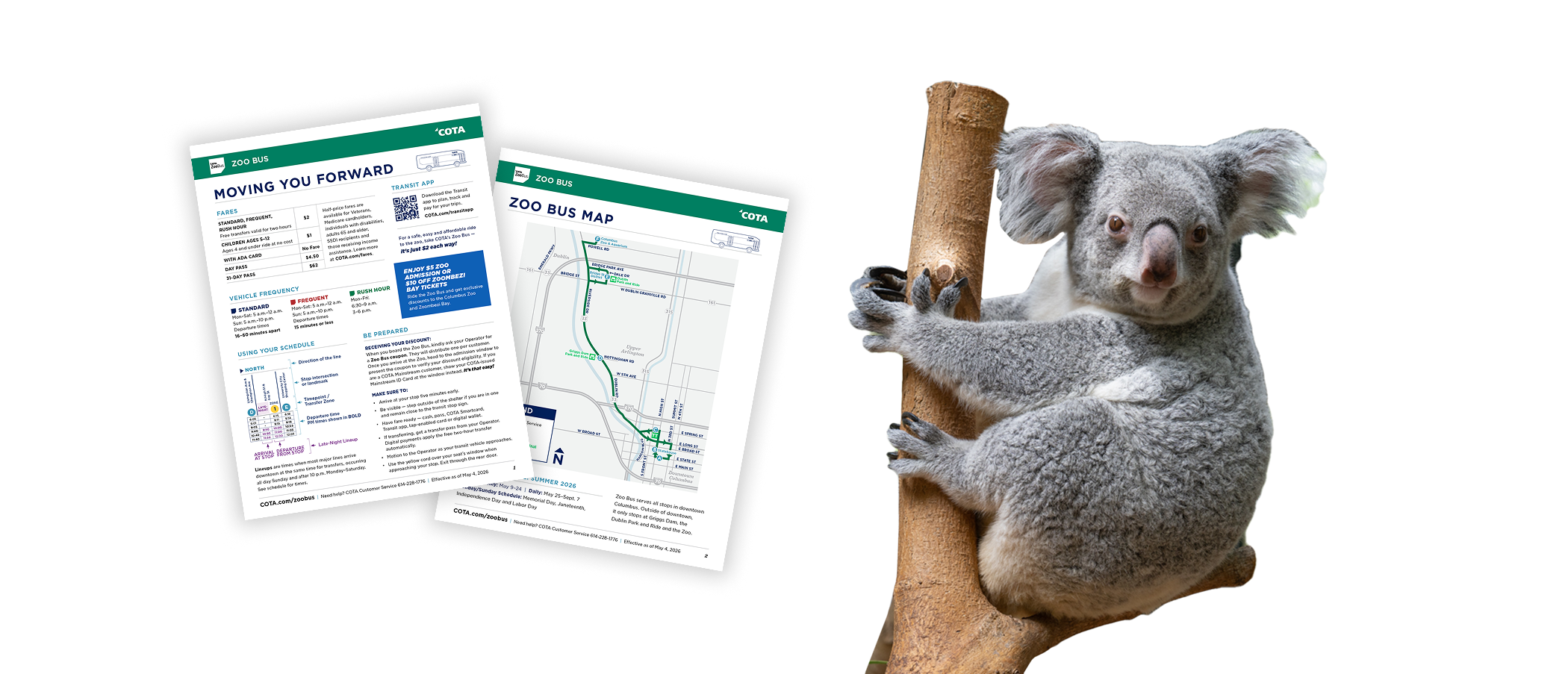 Your safari starts with the Zoo Bus! For a safe, easy and affordable ride to the Columbus Zoo, take COTA’s Zoo Bus — it’s just $2 each way and available from May to October. The best part? Admission to the Zoo is $5 per person when you ride. Or, you can get $10 off Zoombezi Bay tickets.