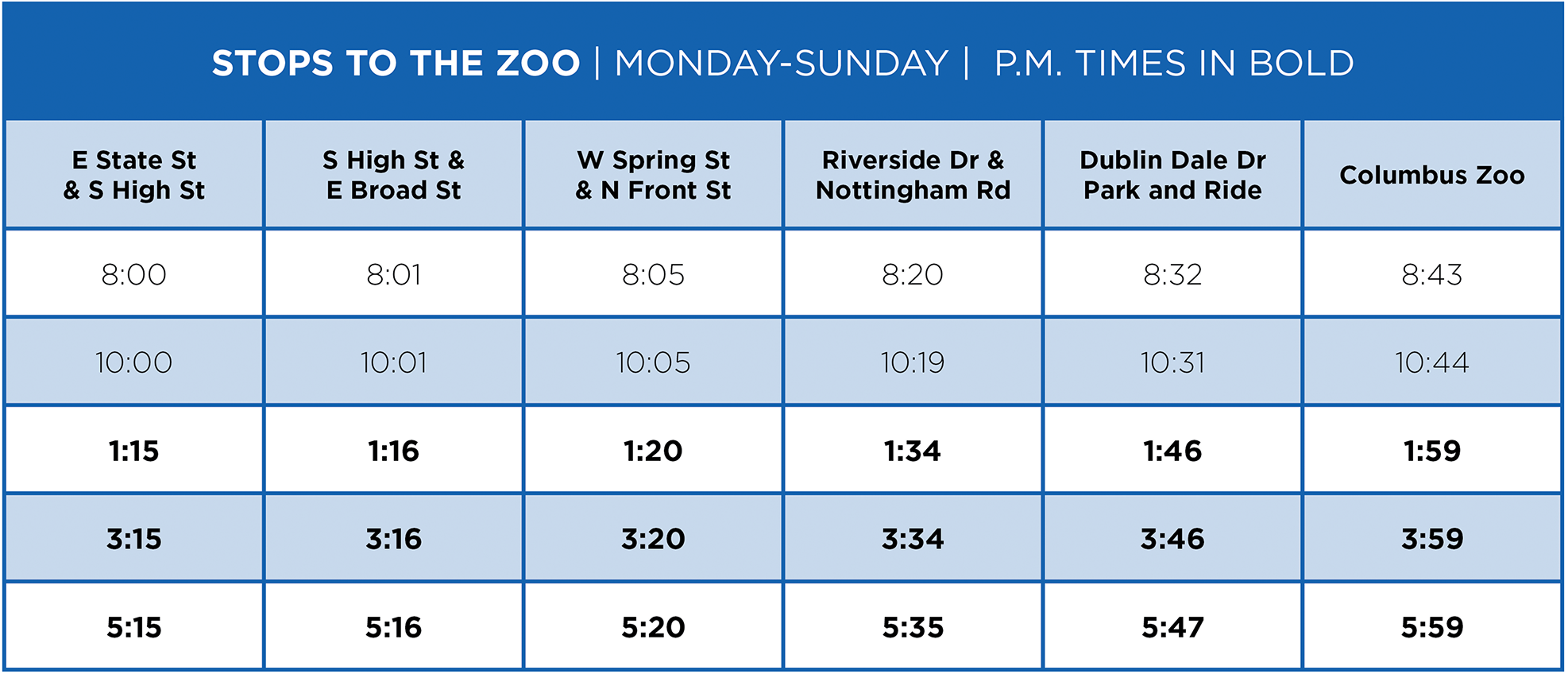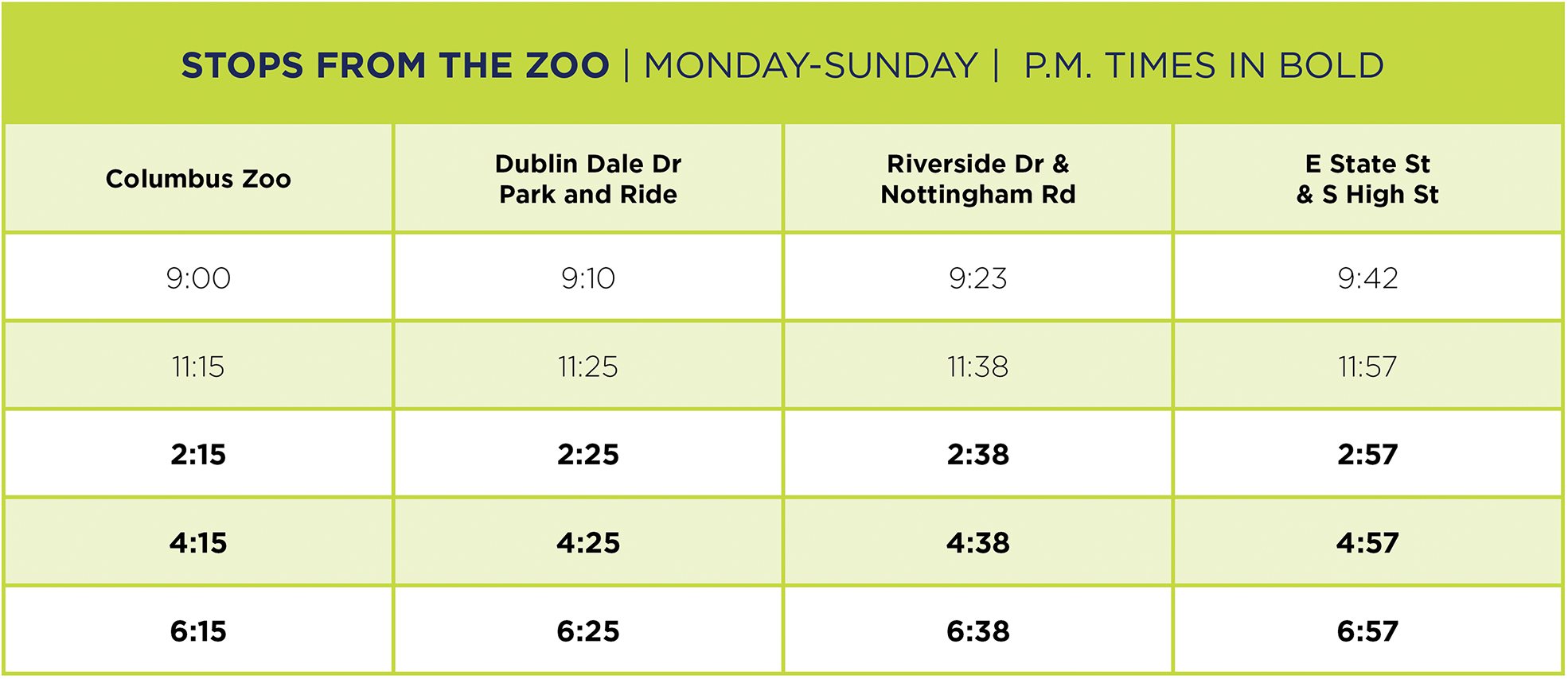 Summer 2026 Zoo Bus Schedule