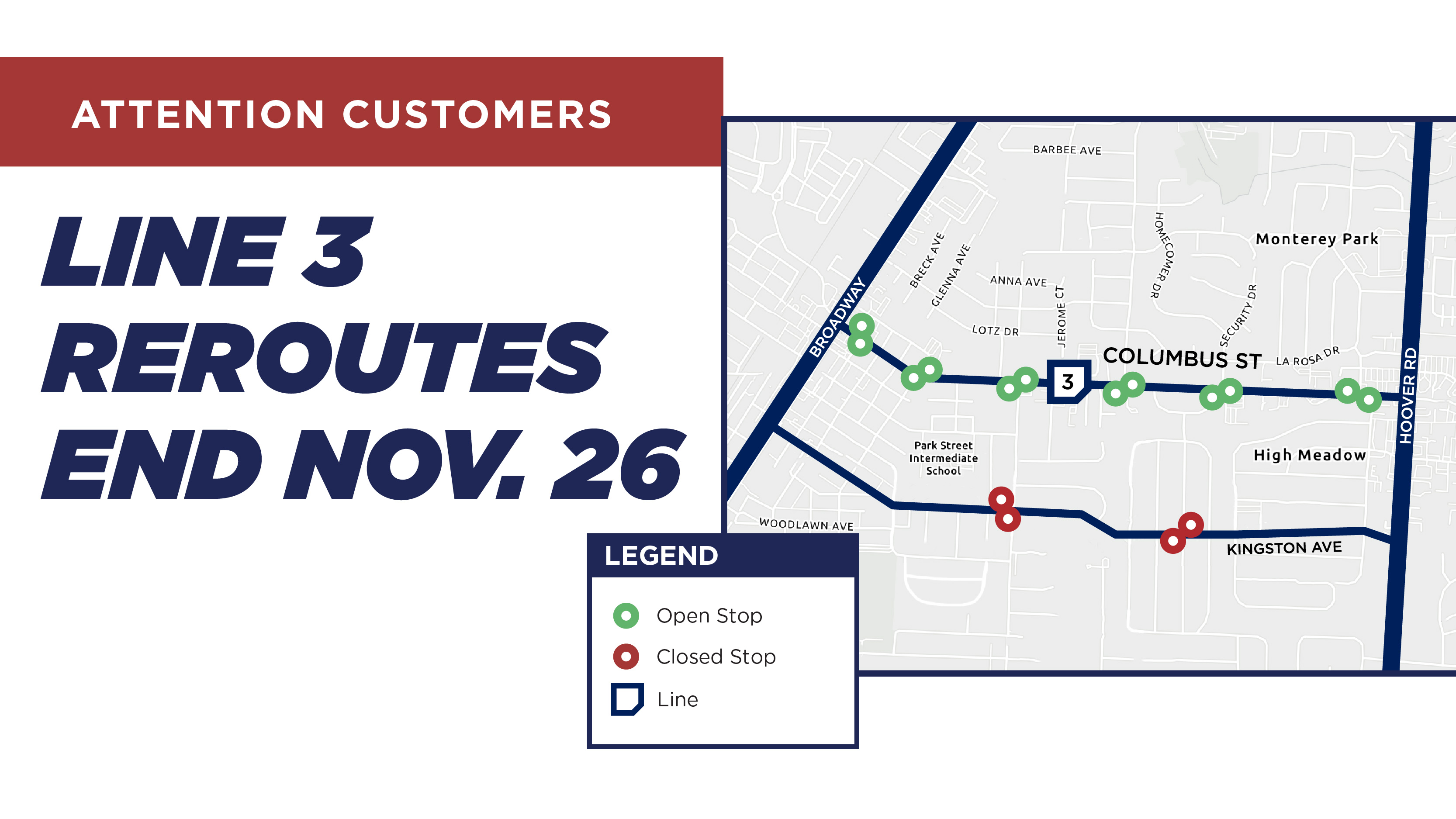 11/26 Line 3 reroutes end, and Kingston Ave. temporary stops will close.